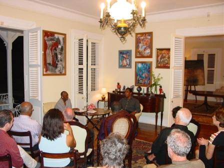 Bel entretien avec Maryse Condé dans la maison coloniale Le Maud’huy à Saint-François (Guadeloupe), formidable jouteuse et critique rigoureuse autour de mon ouvrage Ta Mémoire, Petit Monde. En présence du Maire de Saint-François, du DRAC de Guadeloupe, et de personnalités Guadeloupéennes de la Culture sous les auspices bienveillants de la maîtresse des lieux, organisatrice de la rencontre: Marie Abraham, et le regard amusé de ma mère à qui ce livre est dédié.