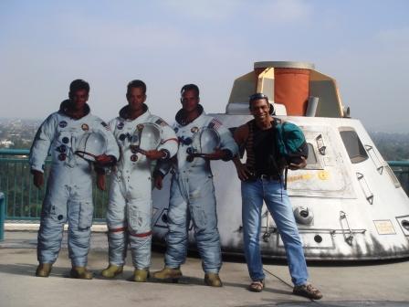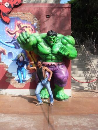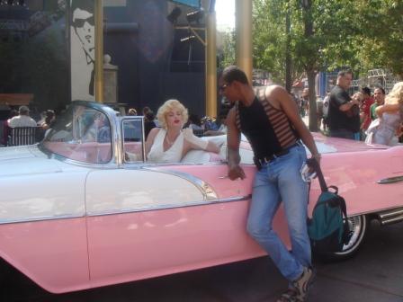 C’est une machine contre la mort, contre l’idée même de la mort et contre le temps qui passe. Tout est toujours ramené au présent du spectateur. C’est là toute sa puissance : elle empêche la mort d’advenir et nous inclut vivant dans son monde reconstitué. Ce qui a existé existera toujours auprès de nous. Les animaux préhistoriques, comme les personnages historiques. Le temps est aboli, l’espace aussi. Une réalité rêvée qui n’exclut pas le spectateur, bien au contraire. Nous sommes ici au far-ouest aussi bien que dans un village français ou sur la lune. Nous pouvons converser avec Marylin Monroe dans sa décapotable rose au coin d’une rue. Je peux être à côté d’Armstrong, Aldrin et Collins comme le premier cosmonaute noir de retour de la lune. Même les cartoons ont un statut de réalité, tout autant que moi-même, et Hulk le terrifiant homme vert est un ami, juste un peu plus musclé.