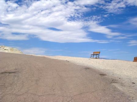 Ma voiture pourtant assoiffée ignore bravement la station service attrape gogo et file étonnamment silencieuse en plein cœur de l’enfer, Death Valley. Il fait maintenant 50° à l’ombre et ce vent du désert qui vous enflamme dans son manteau brûlant. En haut d’une montée m’attend un banc solitaire où le fantôme d’Antonioni contemple la gueule béante de l’enfer. Un paysage fantastique d’une beauté abrasive. Nous sommes à Zabriskie Point. Un point de non retour, un point de grand vertige. Ce film et moi, nous nous sommes tant aimés, et me voici dans son décor. Feed-back sur années 70, révolte d’une jeunesse assoiffée de justice et affamée de vie, de rêve et d’utopies.