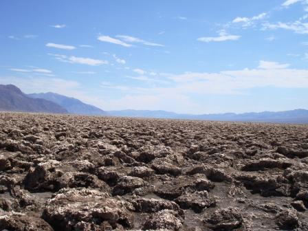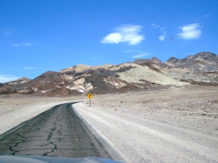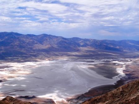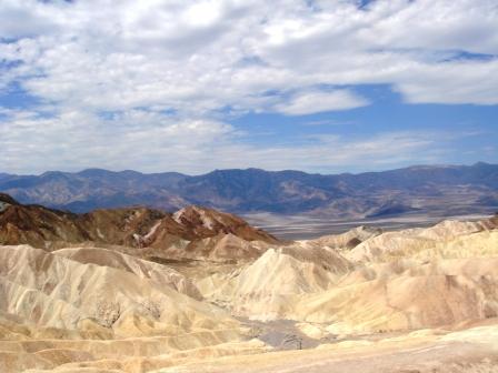 Ce qui me paraissait écran lisse, est un paysage torturé nommé « Le terrain de golf du diable » qui étend ses blocs de sel sur des centaines d’hectares à des dizaines de mètres au dessous du niveau de la mer. Sous cette plaque y coule une eau saumâtre nommée Bad Waters. Je fuis cette fournaise et remonte par l’Artist drive, une route qui dessine une fantastique palette de couleurs sur des pentes torturées avec toutes les ressources des minerais présents dans le sous sol. Quand on s’approche de trop près, on n’y voit rien. Les détails ne parlent pas. Il faut monter toujours monter au point de non retour, à ce lui du vertige. C’est de là-haut qu’on voit l’écran. Les nuages ont raison.