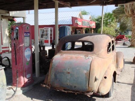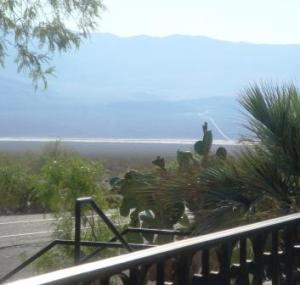 100° Fahrenheit, ou en Celsius 37, 2° ce matin à l’ombre de la terrasse du motel de Panamint Springs où une serveuse peu accorte vient vous flanquer sur la table des œufs brouillés impropres à vous réconcilier avec les réveils matinaux, et un café approximatif que même George Clooney faisant assaut de tout son charme n’arriverait pas à refiler à la plus fondue de ses admiratrices, même en la payant. On a effectivement envie de lui jeter comme dans cette fameuse pub caféière : « what else ? » Rien, rien que cette rue qui poudroie et cette station service en contrebas au prix d’essence exorbitant, rattachée à ce sans complexe hôtelier et dont le patron bedonnant, casquette vissée sur la tignasse grise et en bleu de travail de garagiste, vient de sortir pour traverser la rue, une canette de bière à la main, pour s’aller l’enfiler légèrement titubant (sans doute pas la première de la matinée) à l’ombre d’un palmier assoiffé.