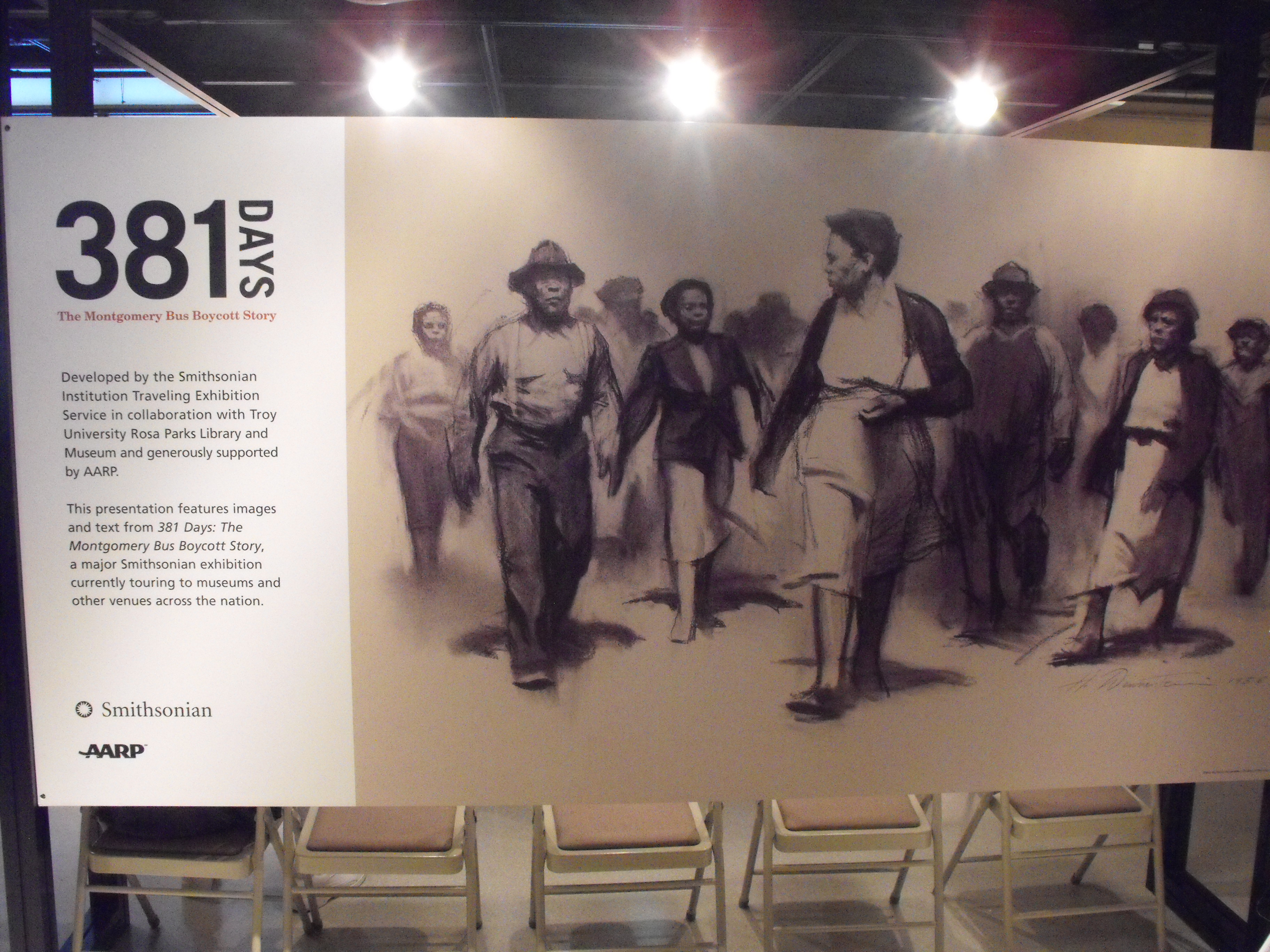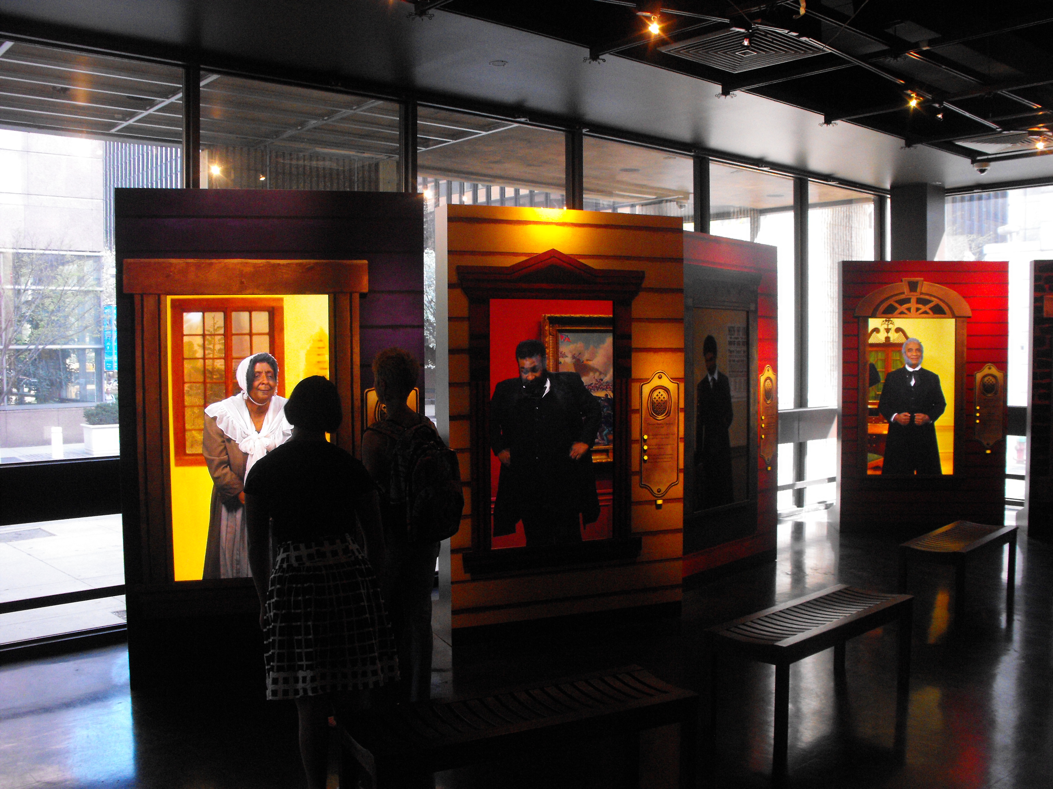 Un sourire chaleureux m’accueille. De vieilles dames noires aux cheveux gris me tendent un dépliant et m’invitent à entrer dans une pièce sur un mur duquel une étrange fresque où se découpent de célèbres visages, s’anime. Je vois des noms, des dates, des lieux. Une voix me raconte la longue et lente émancipation des noirs américains brisant le joug des discriminations raciales.