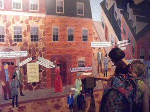 C’est un musée où l’histoire s’enrichit d’une mise en scène entremêlant des œuvres d’art et des installations inventives à vocation pédagogique. Des tableaux vivants s’animent lorsqu’on les y invite, et des personnages d’époque nous parlent de leur histoire. Oui, le tableau est vivant, l’histoire est vivante. Ces personnages du passé parlent aux présents depuis leur époque. Ils sont comme des cartes animées du monde d’Alice. Un forme de merveilleux qui nous parle d’une histoire qui ne le fut pas. Rien ici de triste ou de plaintif. Bien au contraire.