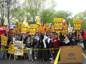 Cette avenue est infinie. A la hauteur de la 59è rue, l’immense poumon rectangulaire de Central Park. Je file en longeant son flanc droit. 68e, 72e, 77e rue. Les blocks se suivent et se ressemblent. Si je ne jetais un œil de temps à autre sur Central Park à ma gauche, j’aurais l’impression de faire du surplace. J’arrive au niveau de l’Upper East Side où m’attend une vaste manifestation. Rangés sagement derrière des barricades en attendant qu’on leur donne la permission de défiler des milliers de manifestants, agitent leurs pancartes. Dessus je vois se répéter le mot « not fair ». Je me renseigne. On m’explique qu’il s’agit d’une manifestation pour obtenir des contrats réguliers et en bonne et due forme. Tiens, ça me rappelle quelque chose. Je les regarde. Ils sont tous noirs ou basanés. Comme par hasard. Je file. Je désespère d’arriver au bout de Central Park. Mes jambes ont pris leur autonomie. Elles ont passé le cap de la première douleur. La mécanique est lancée, difficile de l’arrêter. Passés l’immense Museum Mile et le Jewish Museum, j’entrevois enfin le bout du parc. J’accélère sans le vouloir vraiment. Au bout de Central Park, un espace comme un no man’s land. C’est le Duke Ellington Circle qui sépare Harlem du reste de la ville. Duke Ellington à la pointe du monde noir faisant rotule avec le monde blanc. Duke Ellington, premier musicien noir à pénétrer et jouer dans la forteresse imprenable de la musique blanche qu’était Carnegie Hall. Duke Ellington, premier noir à qui une pièce de monnaie fut consacrée. C’est bien sa place ici, dans l’articulation entre le blanc et le noir. Je continue, j’entre dans Harlem et je suis en Seine Saint Denis.