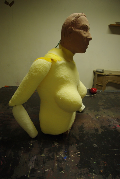 Et en tant qu’auteur je vois dans cette marionnette mon texte qui prend déjà vie, et en tant que metteur en scène, je suis comme Gepetto qui fabrique son pantin et rêve en son for intérieur que ce sera un enfant vrai. Et c’est ce qui peut arriver de mieux à un auteur ou un metteur en scène: que cet enfant soit vrai, c’est à dire qu’il sorte des chemins imaginés et pré dessinés, qu’il prenne ses jambes à son cou et trace son bonhomme de chemin, le chemin de son indépendance en tant qu’oeuvre pour prendre le risque de toutes les rencontres avec le spectateur. C’est ce que me dit la marionnette de la mère Paulin dans son silence si éloquent.