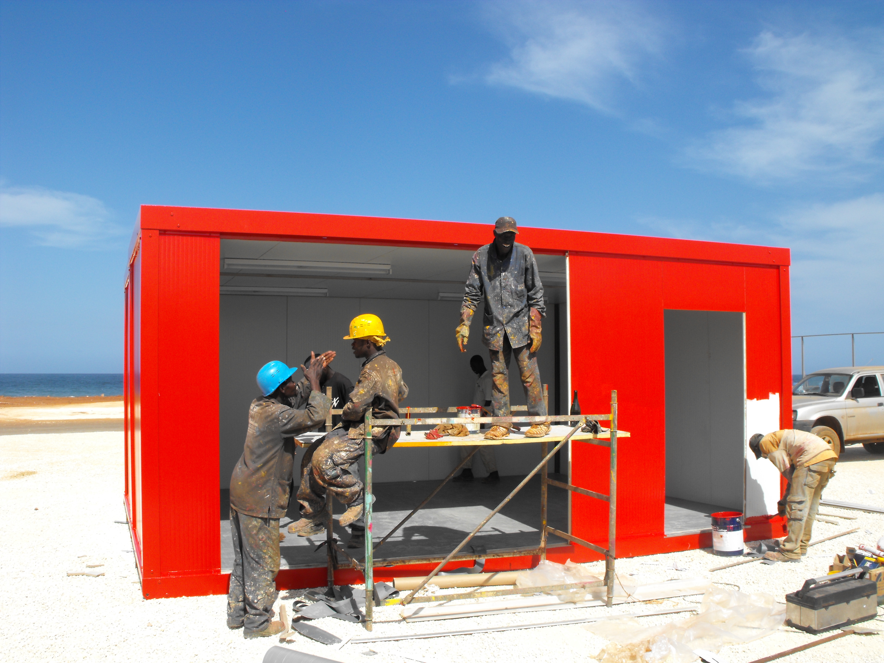 3 heures du matin, après moult conciliabules, les deux garçons (Alain A. et moi), restent dans les chambres tandis que les filles retournent au village après qu’on leur ai préparé des chambres aussi loin que possible des ouvriers finissant le village. Quand et où allons nous jouer ? Nous ne savons pas encore. Le théâtre dans lequel on nous avait finalement programmé n’est pas encore terminé.