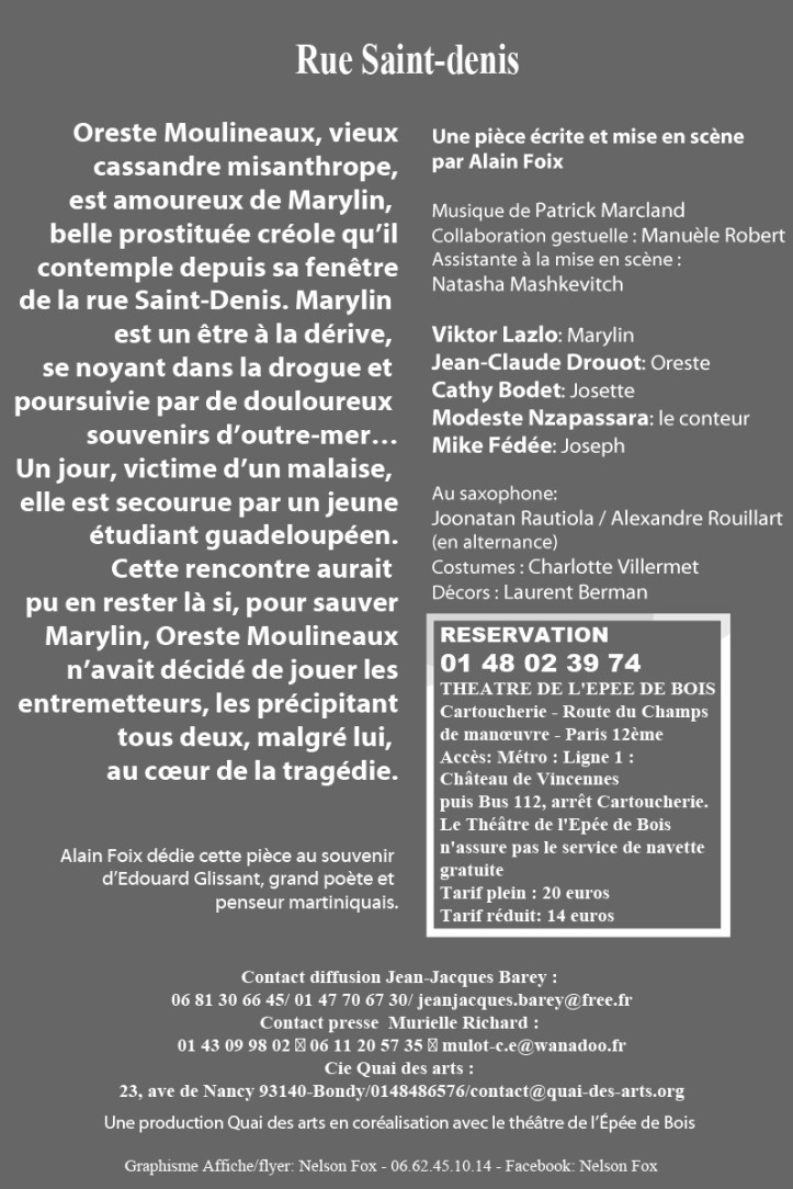 Après la création de Rue Saint-Denis à l’Artchipel, scène nationale de la Guadeloupe où elle y a connu un vif succès, nous voici de nouveau de retour à Paris où nous allons la reprendre pour la création Parisienne.